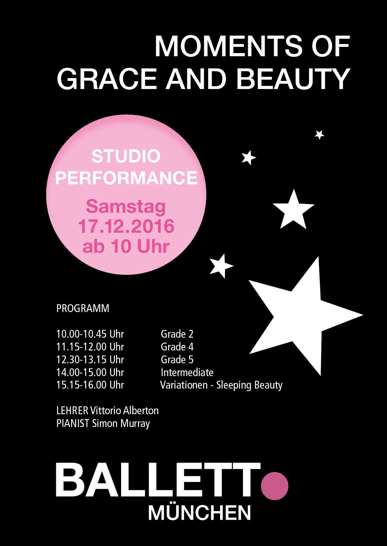Tanz wirkt nach innen wie nach außen. In Schulaufführungen und Studioperformances zeigen unsere SchülerInnen ihr Können und ihre Lernfortschritte. Die sichere Präsentation auf der Bühne ist fester Bestandteil unserer tänzerischen Ausbildung. Sie dient aber auch ganz wesentlich der Entwicklung der Persönlichkeit und des Selbstbewusstseins der TänzerInnen.